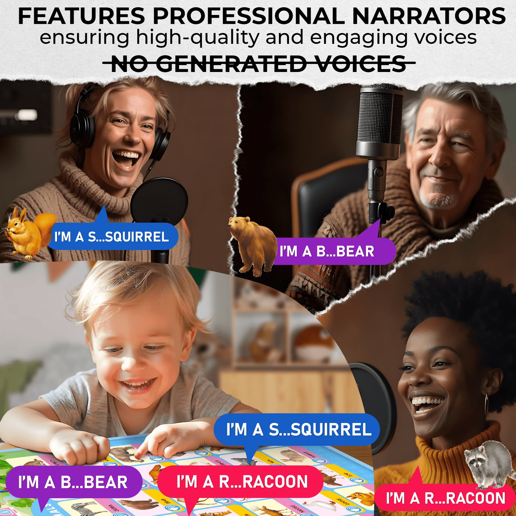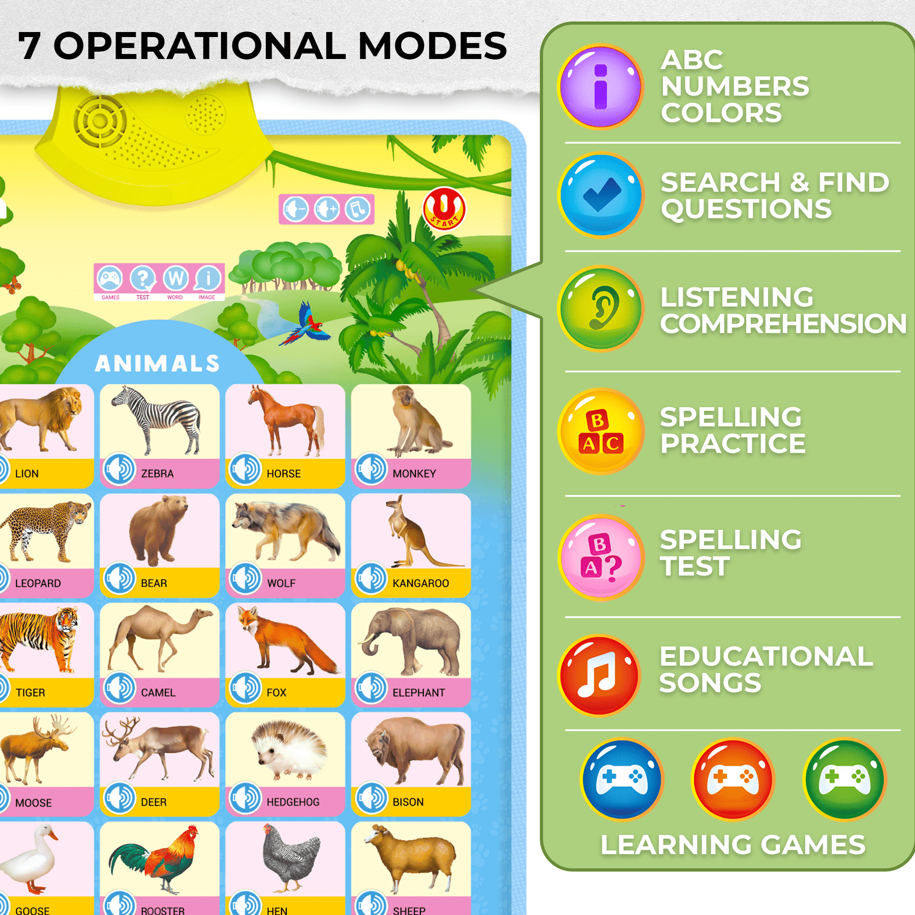 - Encourages vocabulary & speech development.