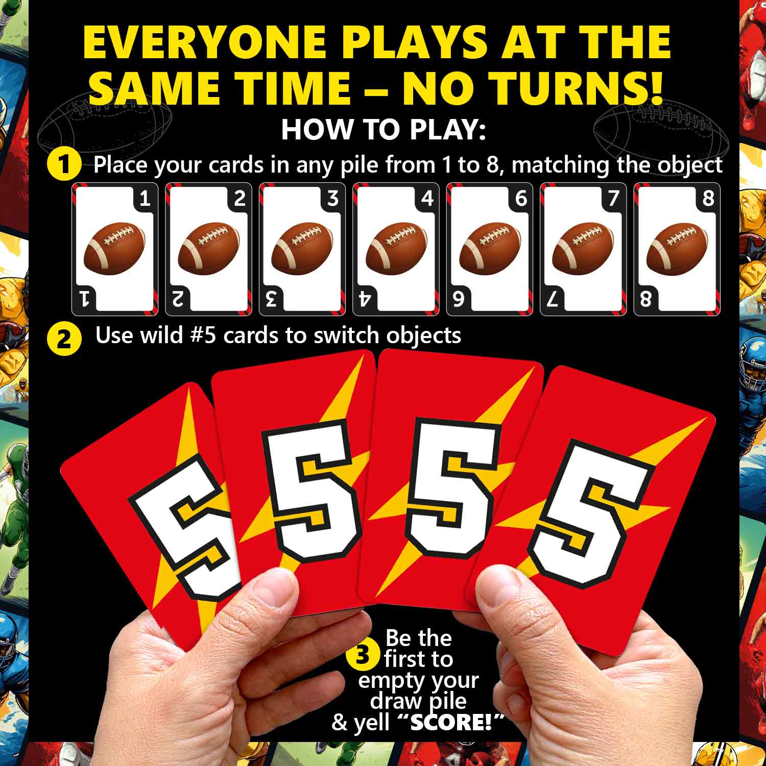 🏈 With 128 vibrant cards and easy-to-learn rules, it’s the perfect mix of speed, strategy, and fun—ideal for family game nights, parties, and travel.