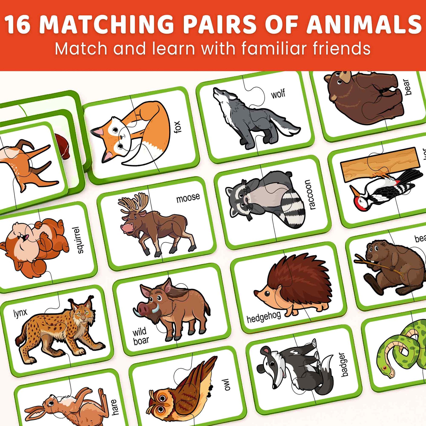 🦊 Featuring 16 sturdy 2-piece puzzles, this game helps little ones recognize animals, build memory, and sharpen problem-solving skills — all while having fun.