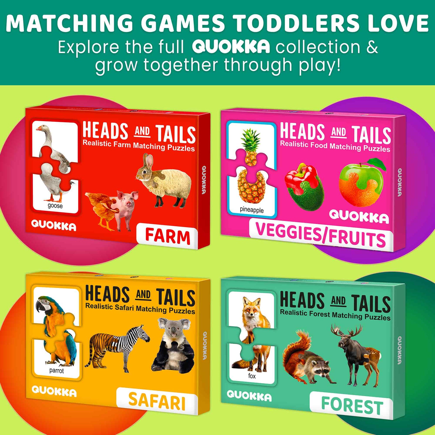 🧩Each puzzle pair showcases a popular animal, making it great for ages 1–3 to explore matching concepts, and 3–5 to reinforce names, memory, and observation.