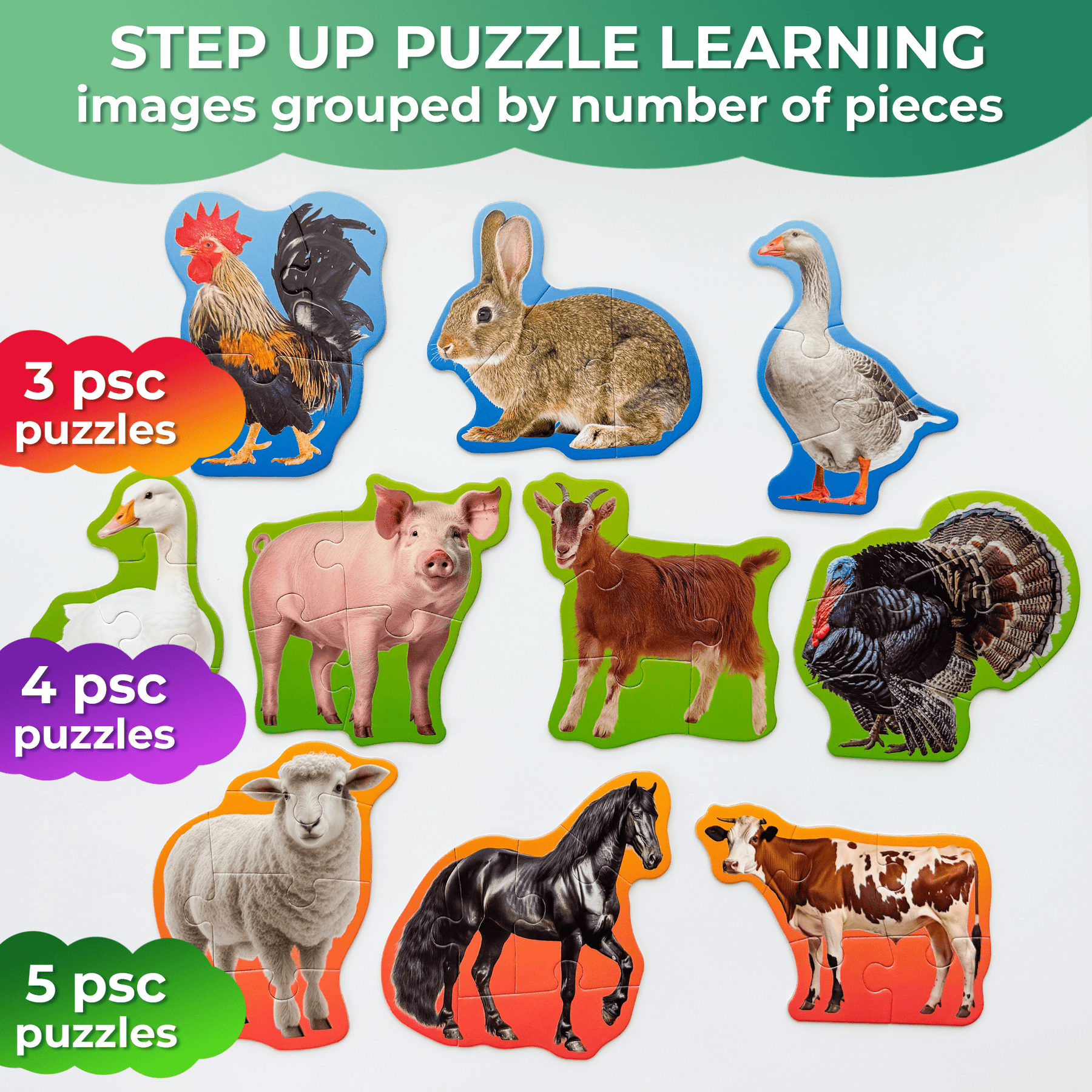 40 Piece Step Up Puzzles for Toddlers | Farm Animals