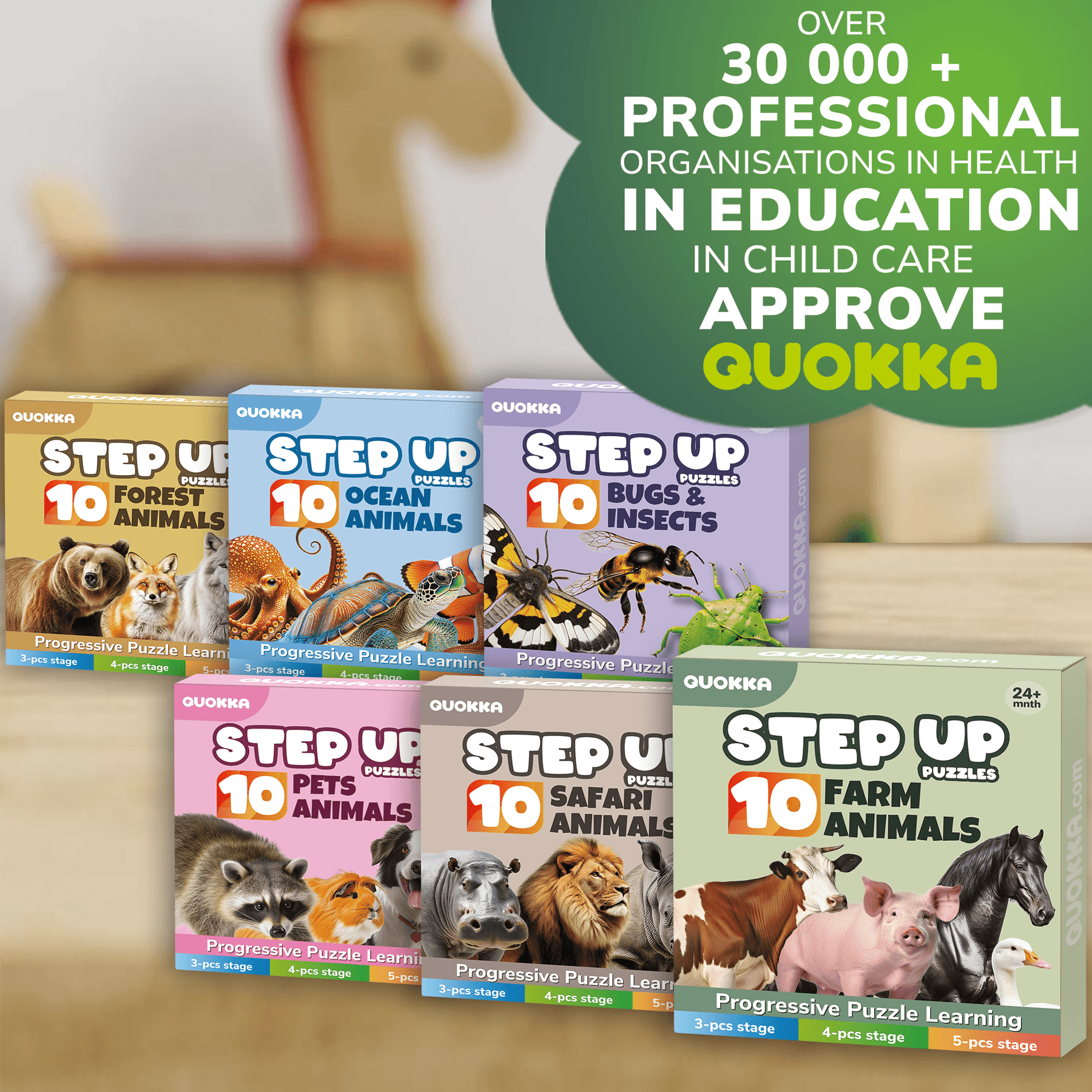EDUCATIONAL REALISTIC COLLECTION: Discover more Montessori puzzles for toddlers with different themes and beautiful realistic animals by Quokka;